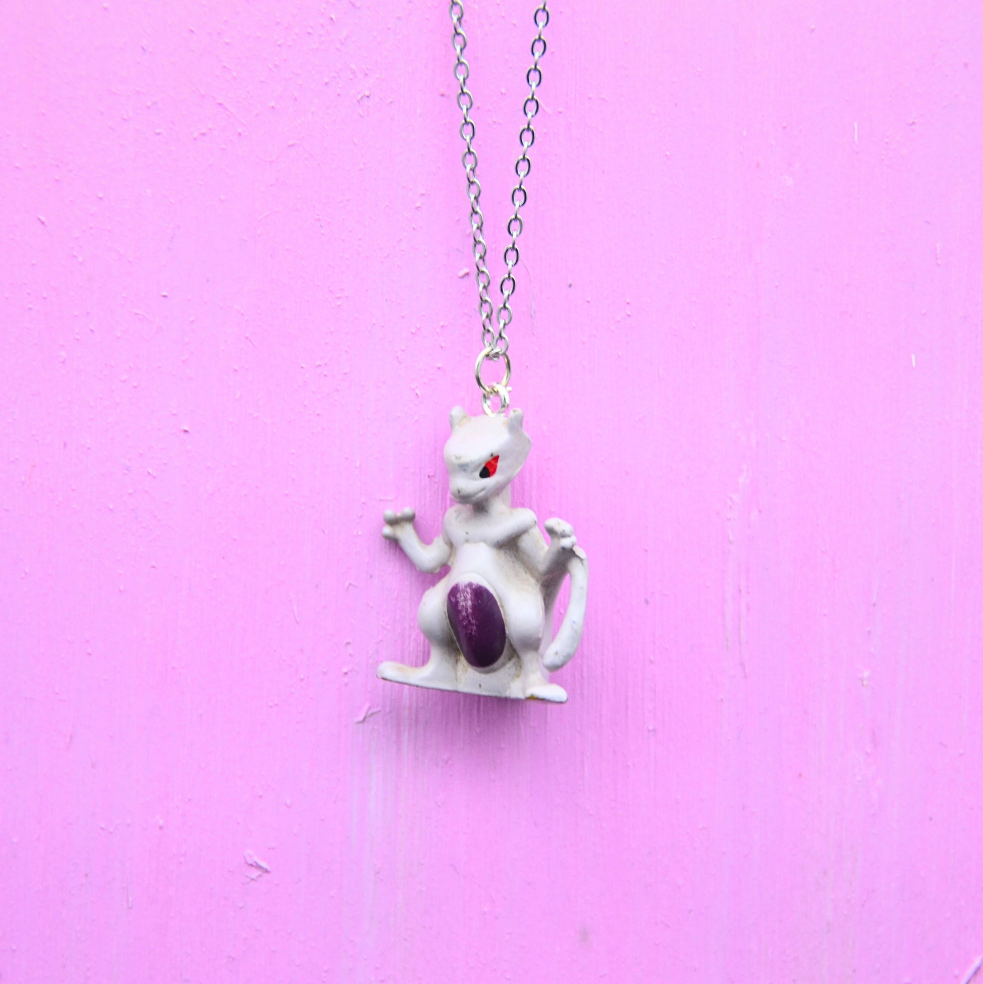 Detta halsband har en pokemon, omsorgsfullt återvunnen från en klassisk leksak och nu ett kreativt och hållbart halsband. Den 45 cm långa kedjan är tillverkad av rostfritt stål, vilket ger en bra hållbarhet och är nickelfritt.