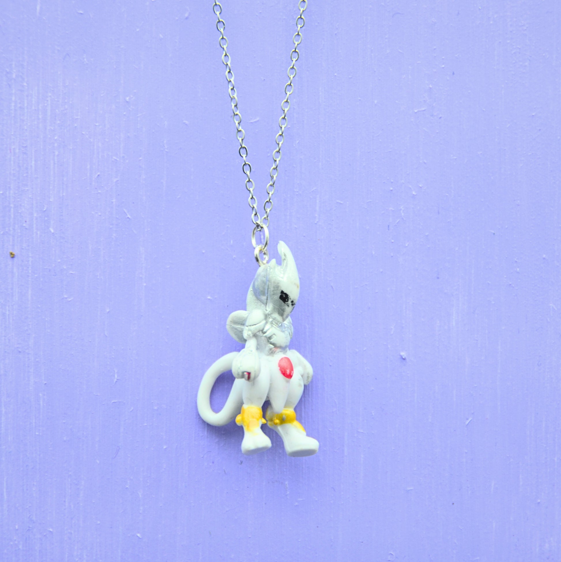 Detta halsband har en pokemon, omsorgsfullt återvunnen från en klassisk leksak och nu ett kreativt och hållbart halsband. Den 45 cm långa kedjan är tillverkad av rostfritt stål, vilket ger en bra hållbarhet och är nickelfritt.