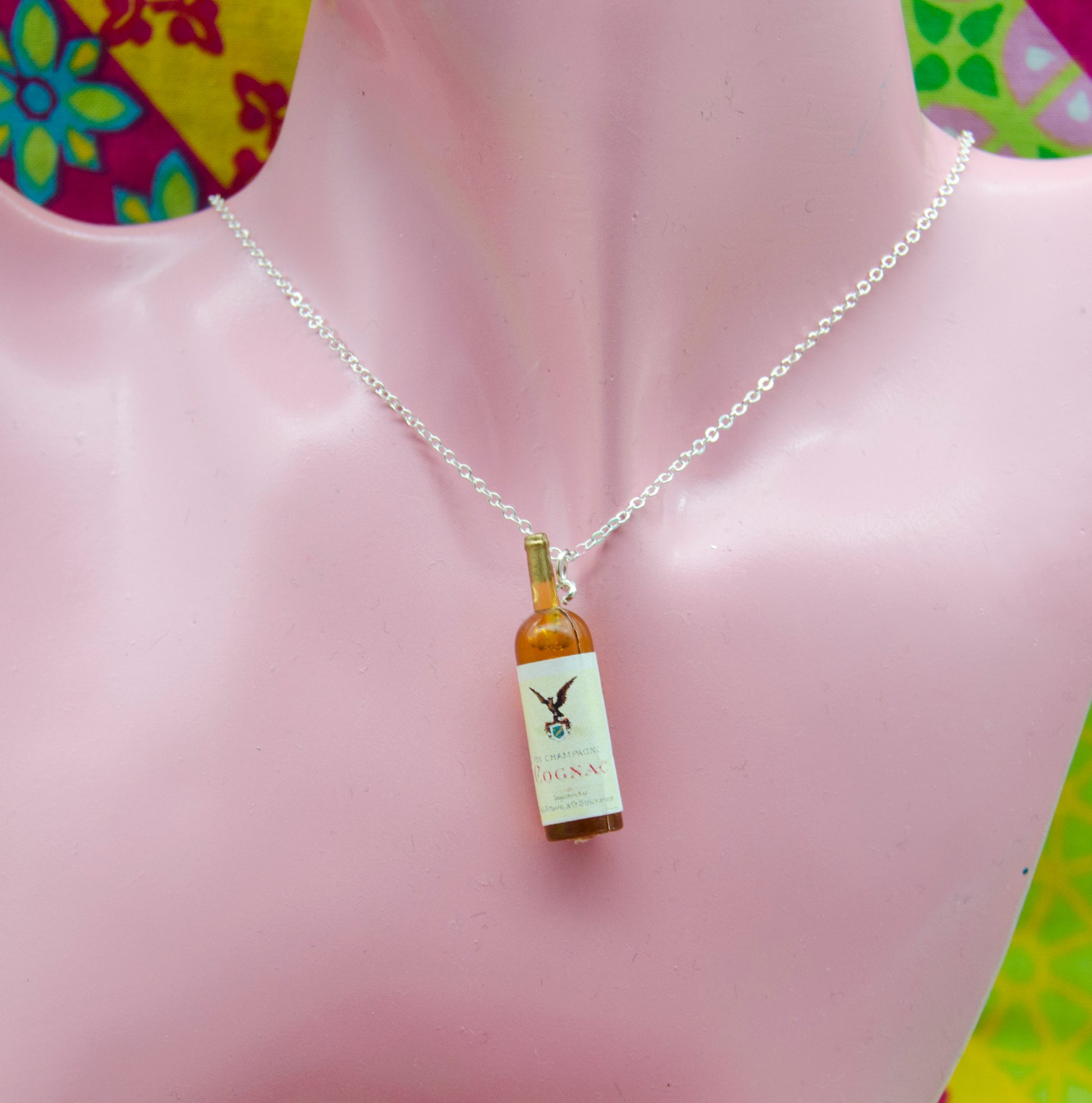 Detta halsband har en flaska, omsorgsfullt återvunnen från en klassisk leksak och nu ett kreativt och hållbart halsband. Den 45 cm långa kedjan är tillverkad av rostfritt stål, vilket ger en bra hållbarhet och är nickelfritt.