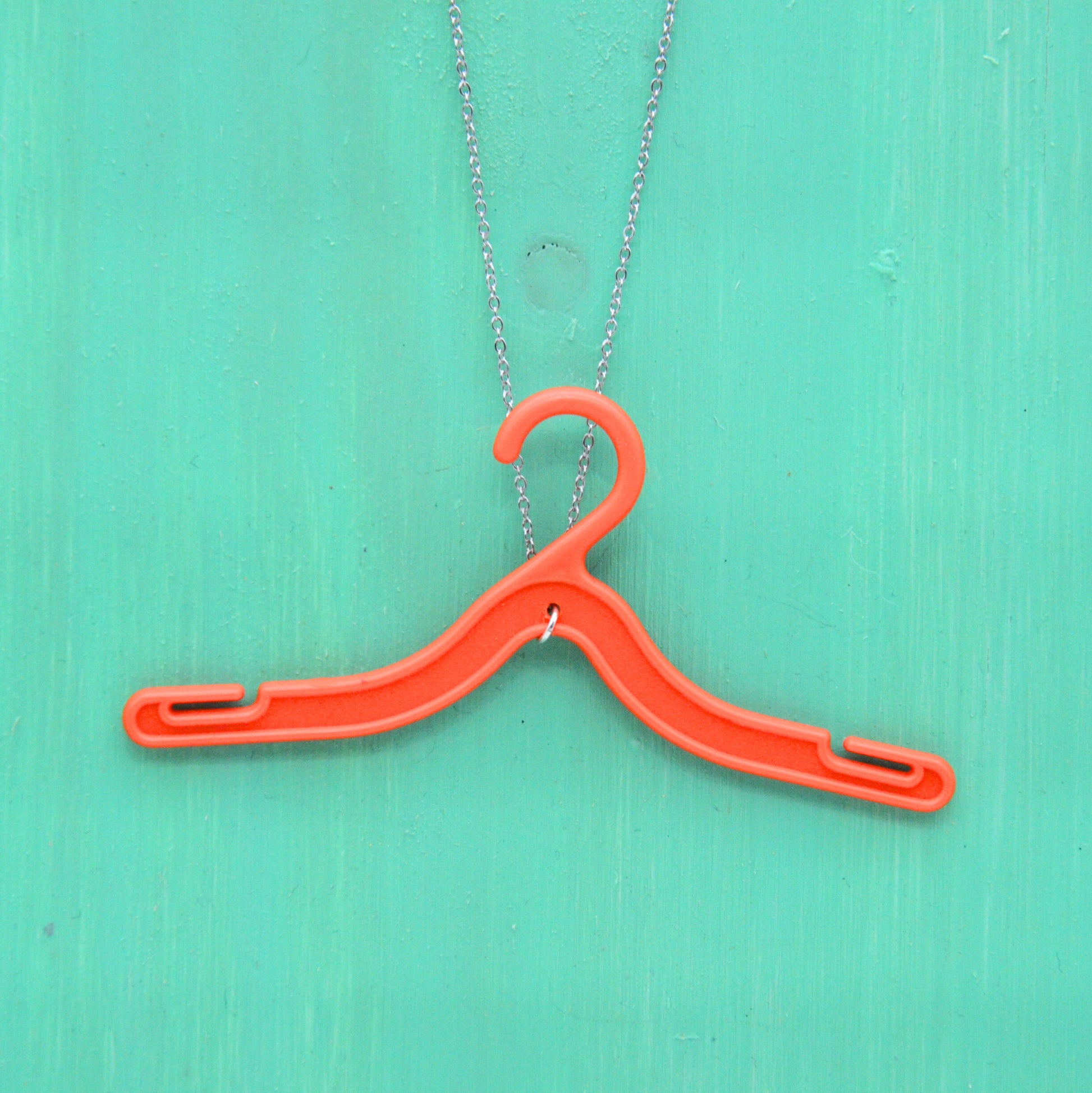 Detta halsband har en galge från Barbie, omsorgsfullt återvunnen från en klassisk leksak och nu ett kreativt och hållbart halsband. Den 45 cm långa kedjan är tillverkad av rostfritt stål, vilket ger en bra hållbarhet och är nickelfritt.