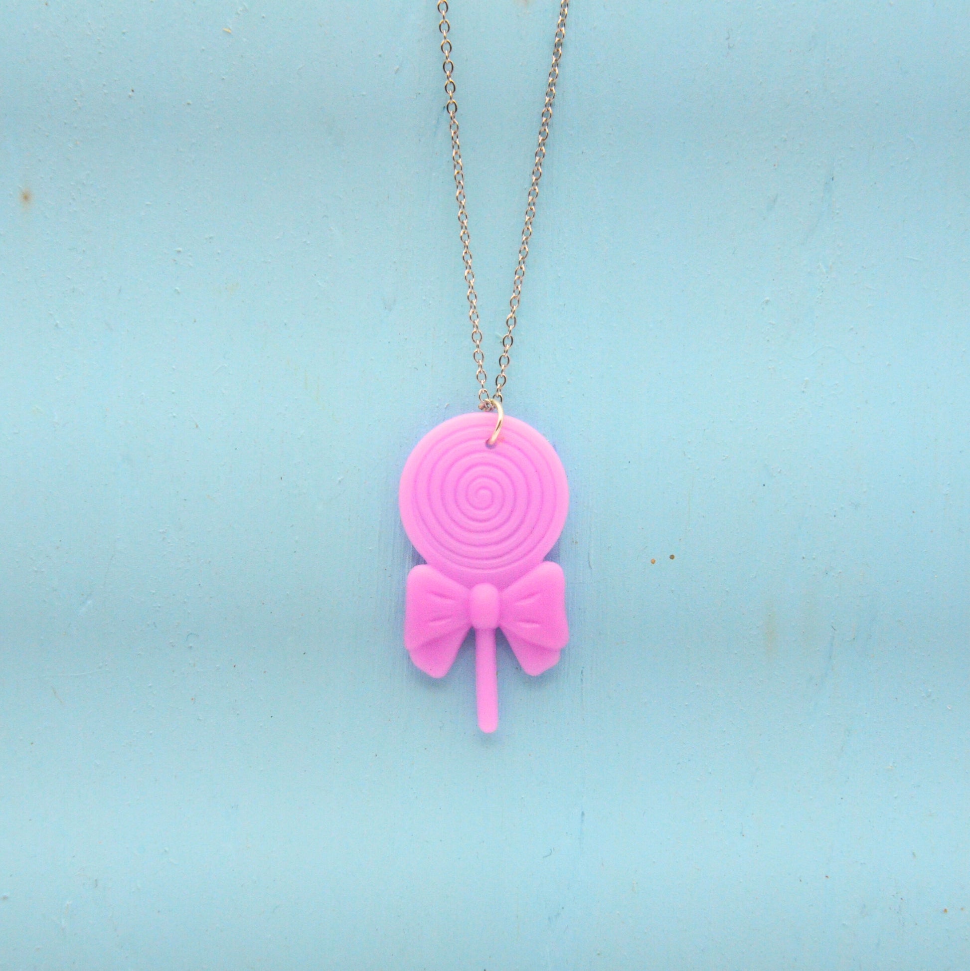 Detta halsband har en rosa klubba, omsorgsfullt återvunnen från en klassisk leksak och nu ett kreativt och hållbart halsband. Den 45 cm långa kedjan är tillverkad av rostfritt stål, vilket ger en bra hållbarhet och är nickelfritt.