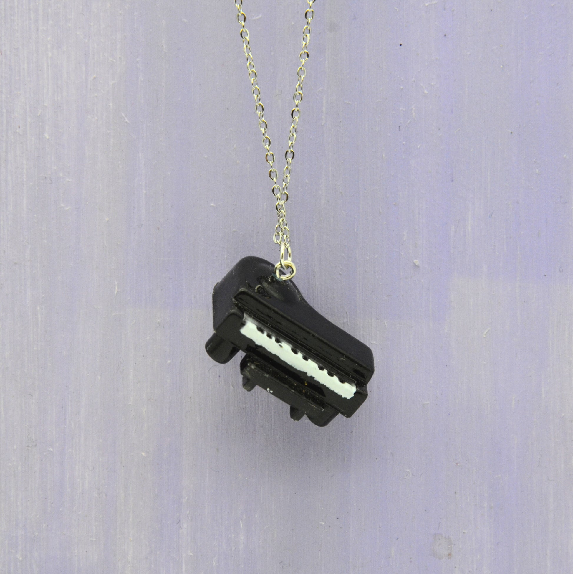 Detta halsband har ett litet piano, omsorgsfullt återvunnen från en klassisk leksak och nu ett kreativt och hållbart halsband. Den 45 cm långa kedjan är tillverkad av rostfritt stål, vilket ger en bra hållbarhet och är nickelfritt.