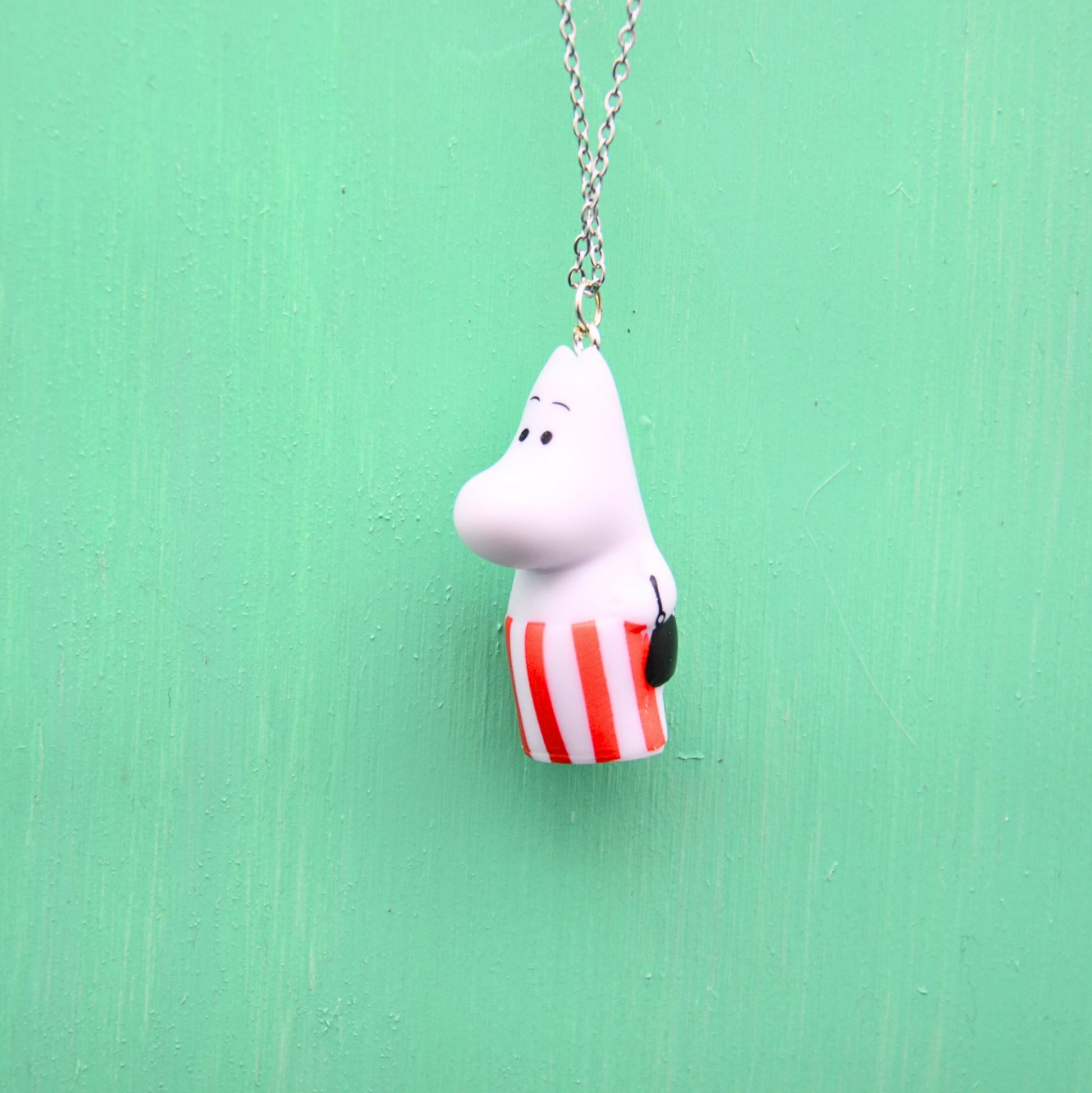 Detta halsband har en muminmamma, omsorgsfullt återvunnen från en klassisk leksak och nu ett kreativt och hållbart halsband. Den 45 cm långa kedjan är tillverkad av rostfritt stål, vilket ger en bra hållbarhet och är nickelfritt.