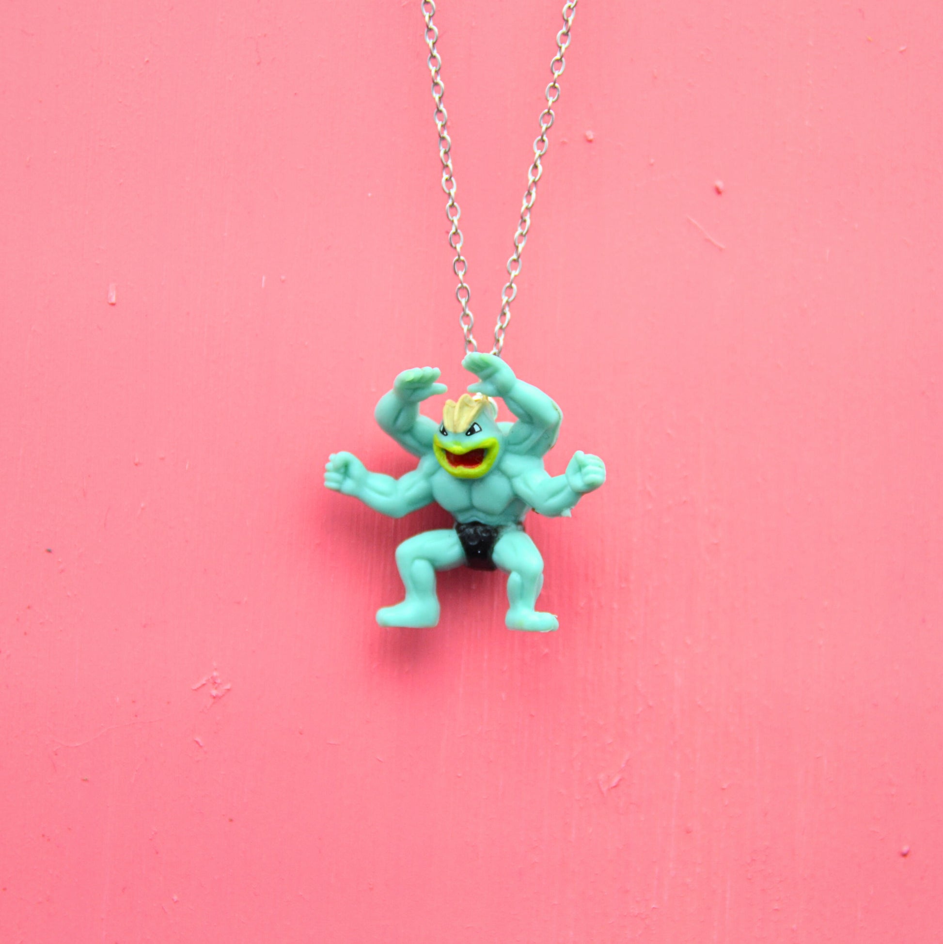 Detta halsband har en pokemon, omsorgsfullt återvunnen från en klassisk leksak och nu ett kreativt och hållbart halsband. Den 45 cm långa kedjan är tillverkad av rostfritt stål, vilket ger en bra hållbarhet och är nickelfritt.