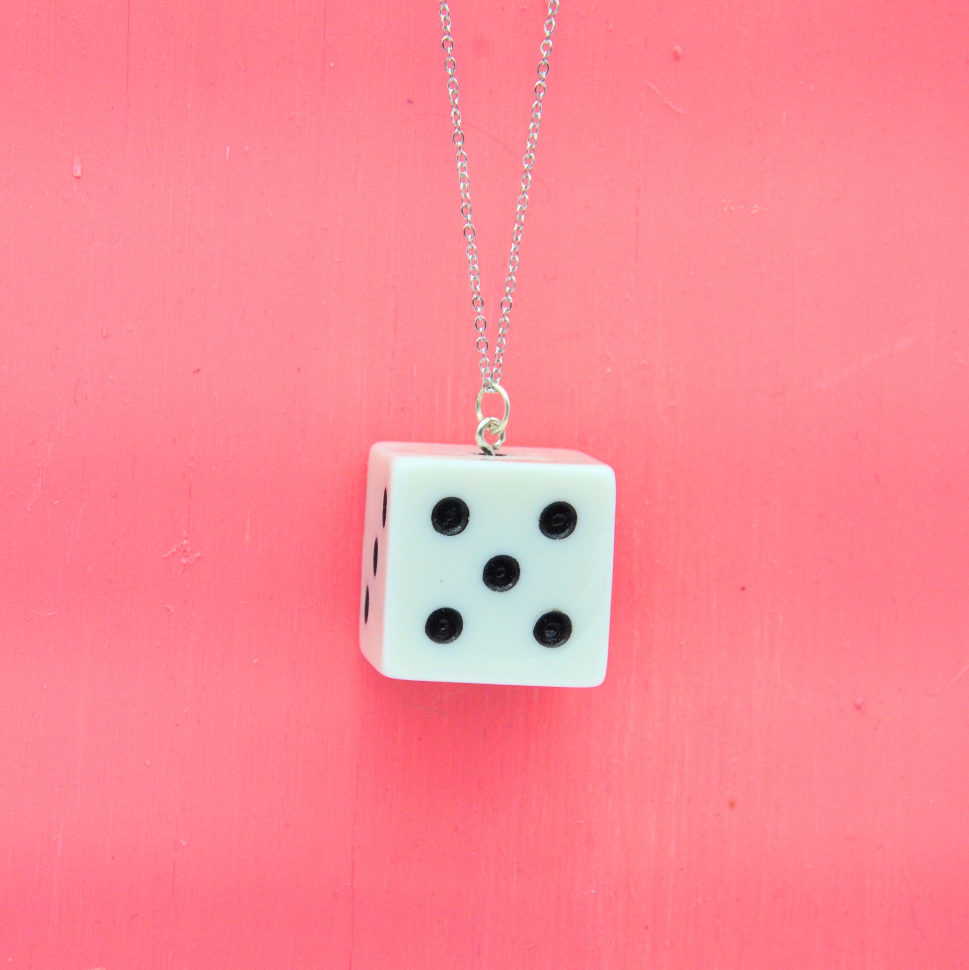 Detta halsband har en stor tärning, omsorgsfullt återvunnen från en klassisk leksak och nu ett kreativt och hållbart halsband. Den 45 cm långa kedjan är tillverkad av rostfritt stål, vilket ger en bra hållbarhet och är nickelfritt.