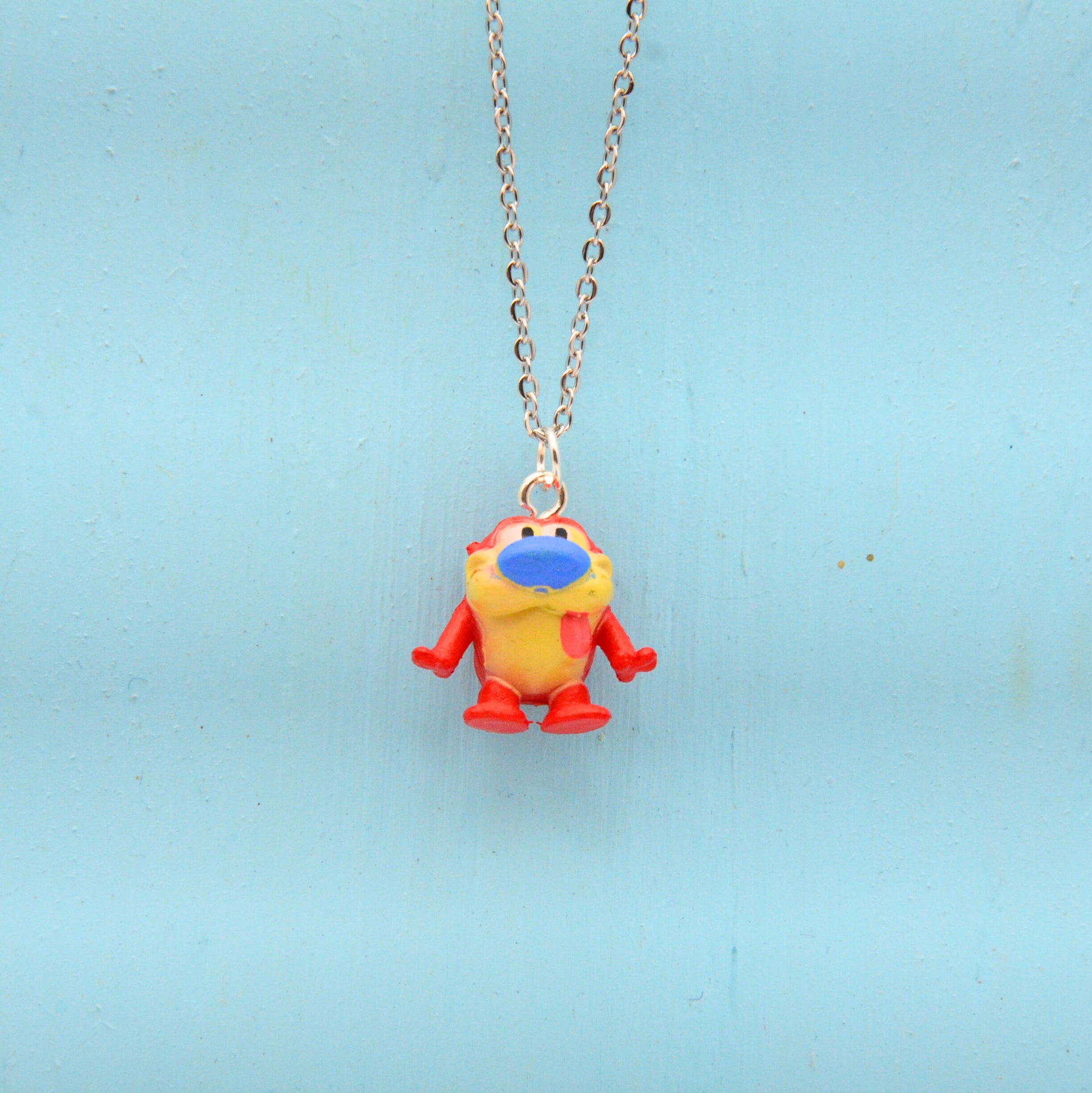 Detta halsband har en tecknad figur, omsorgsfullt återvunnen från en klassisk leksak och nu ett kreativt och hållbart halsband. Den 45 cm långa kedjan är tillverkad av rostfritt stål, vilket ger en bra hållbarhet och är nickelfritt.