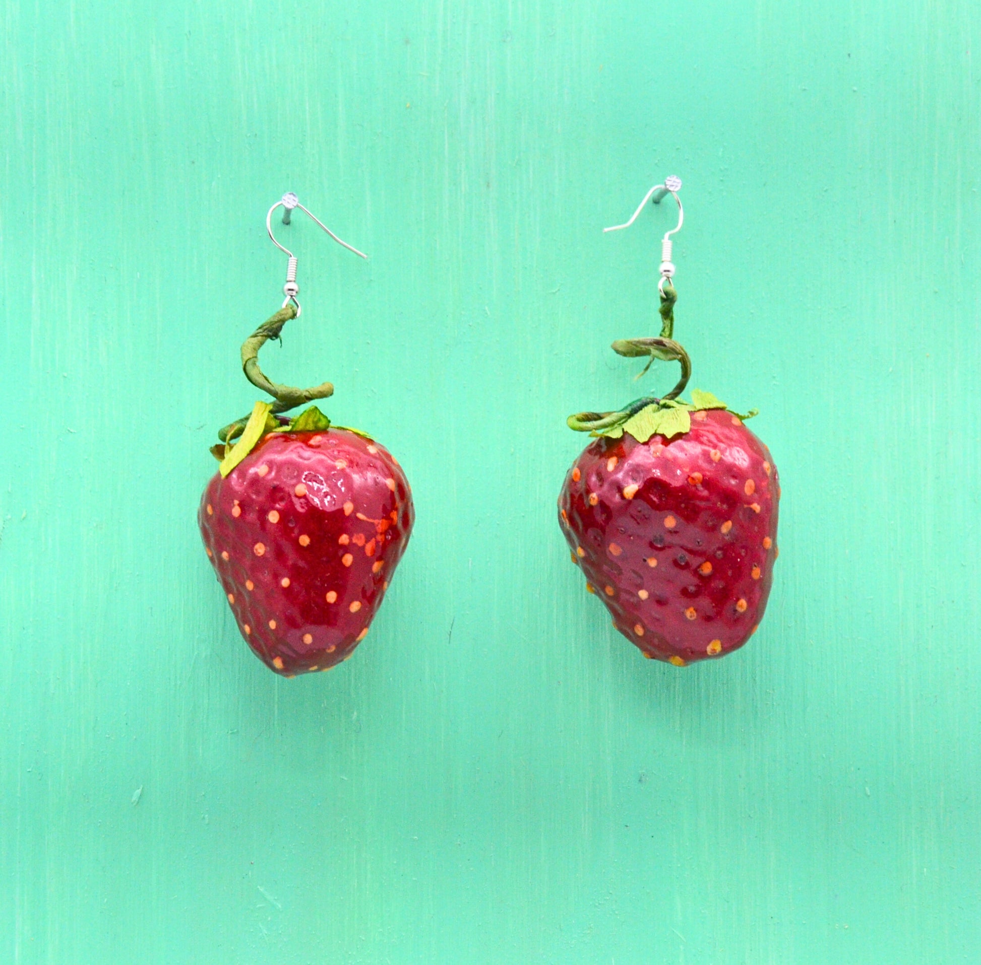 Dessa örhängen är ett par jordgubbar, omsorgsfullt återvunna från klassiska saker och nu ett par kreativt och hållbara örhängen. Hängena är tillverkade av rostfritt stål, vilket ger en bra hållbarhet och är nickelfria.