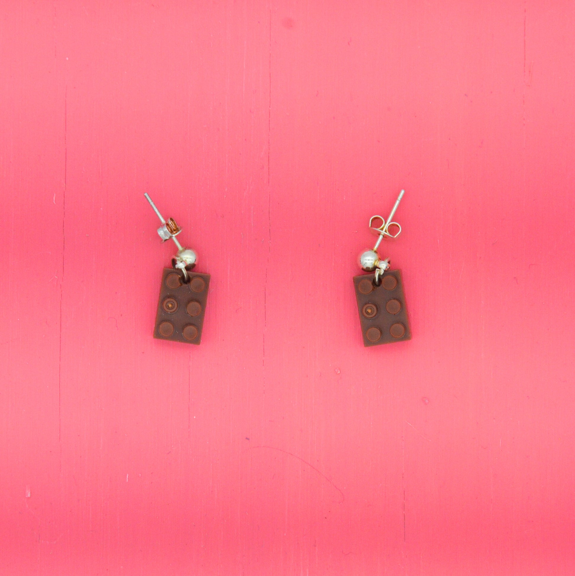 Dessa örhängen är ett par mini klossar, omsorgsfullt återvunna från klassiska leksaker och nu ett par kreativt och hållbara örhängen. Hängena är tillverkade av rostfritt stål, vilket ger en bra hållbarhet och är nickelfria.