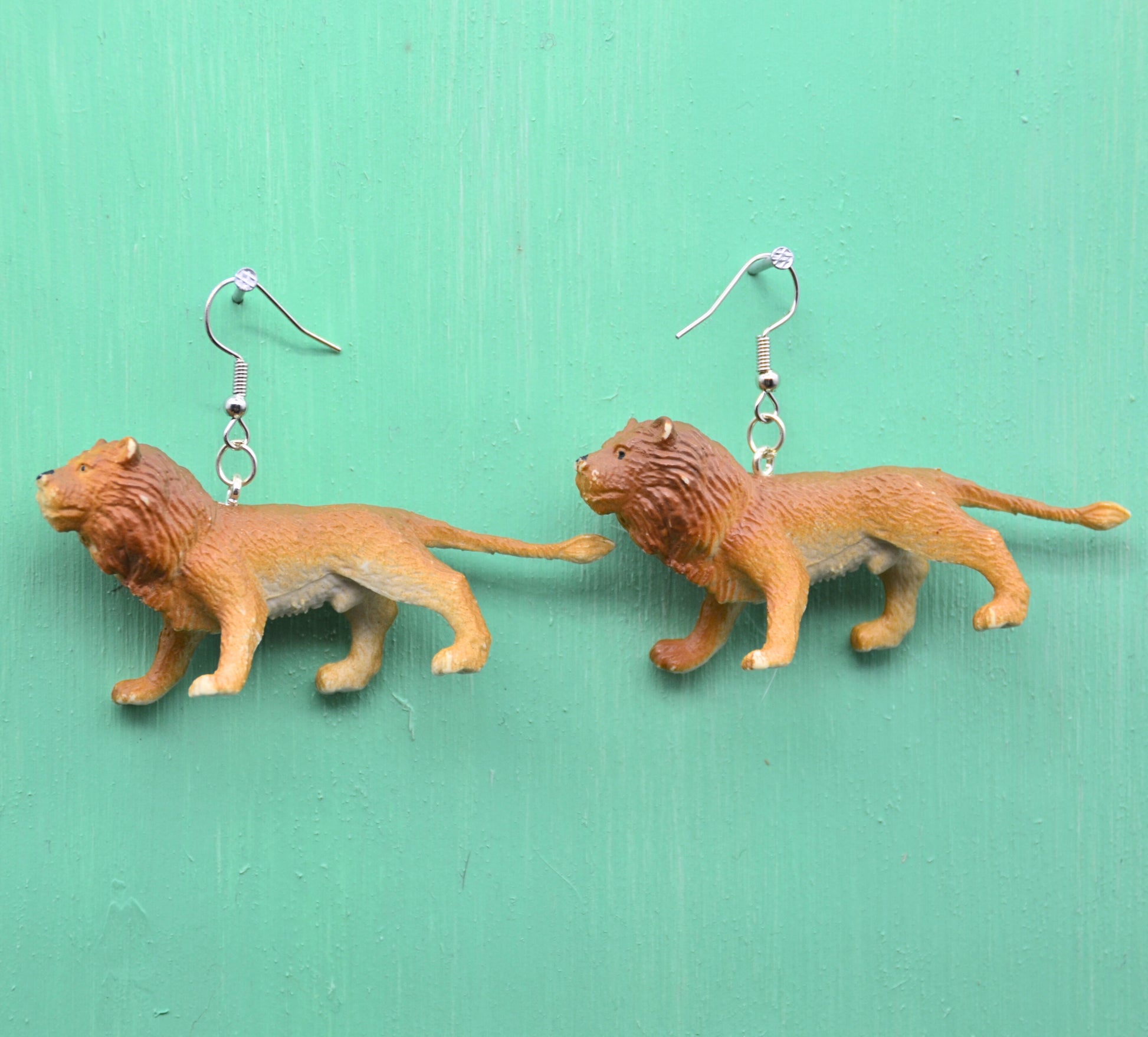 Dessa örhängen är ett par lejon, omsorgsfullt återvunna från klassiska leksaker och nu ett par kreativt och hållbara örhängen. Hängena är tillverkade av rostfritt stål, vilket ger en bra hållbarhet och är nickelfria.