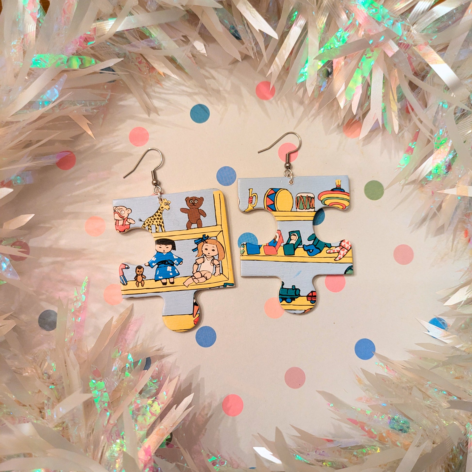 Dessa örhängen är ett pussel, omsorgsfullt återvunna från klassiska spel och nu ett par kreativa och roliga örhängen. Hängena är tillverkade av rostfritt stål, vilket ger en bra hållbarhet och är nickelfria.