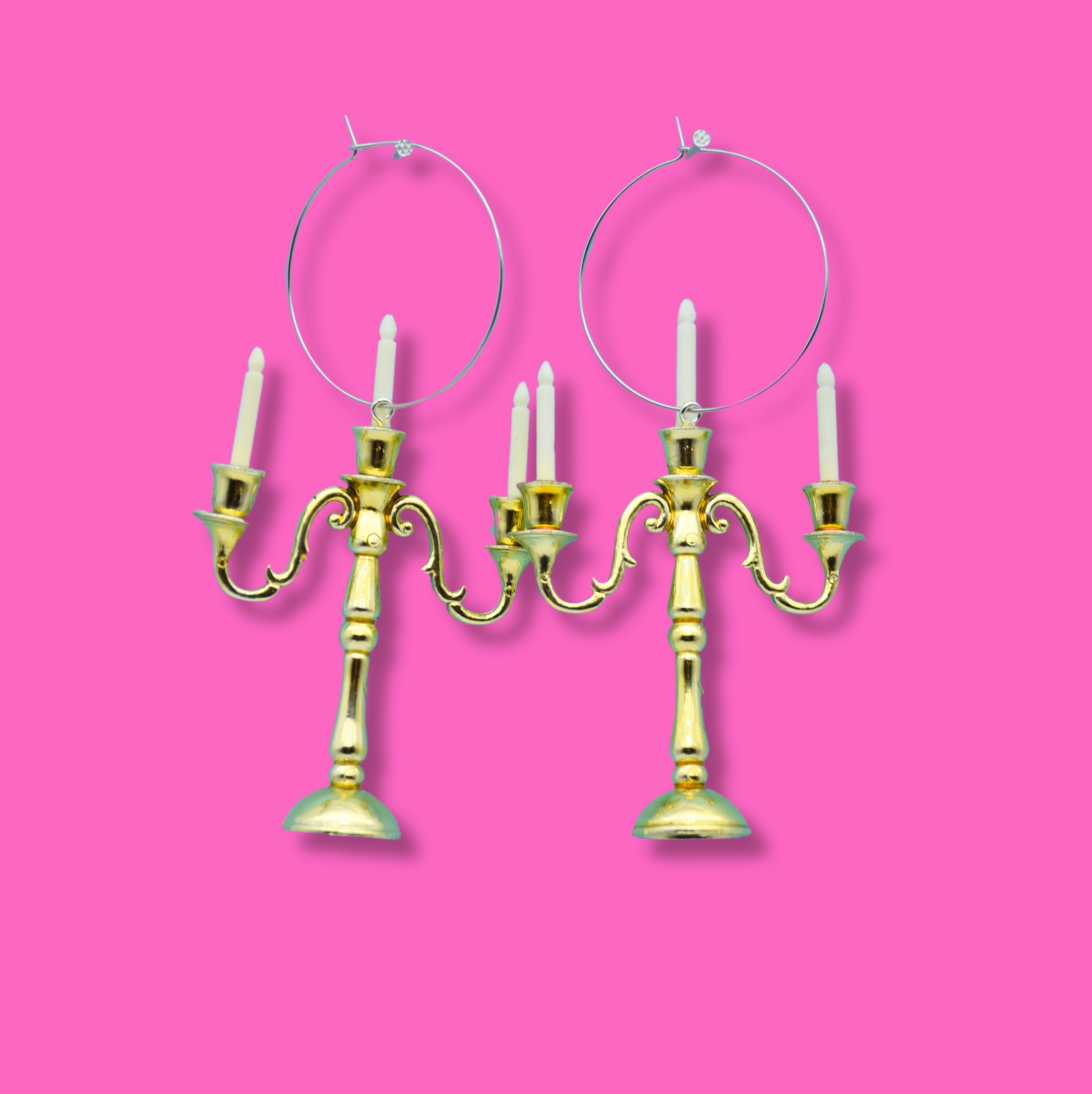 Dessa örhängen är ett par ljusstakar, omsorgsfullt återvunna från klassiska leksaker och nu ett par kreativt och hållbara örhängen. Hängena är tillverkade av rostfritt stål, vilket ger en bra hållbarhet och är nickelfria.