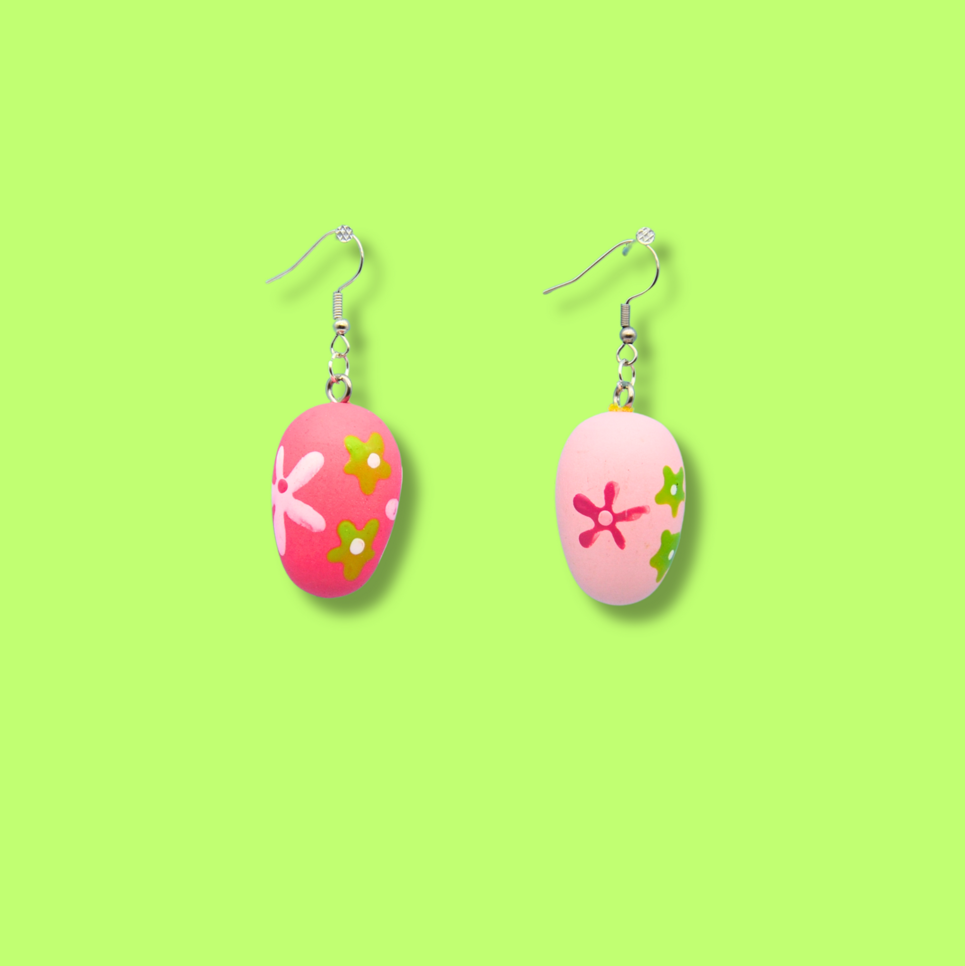 Dessa örhängen är ett par rosa ägg, omsorgsfullt återvunna från klassiska leksaker och nu ett par kreativt och hållbara örhängen. Hängena är tillverkade av rostfritt stål, vilket ger en bra hållbarhet och är nickelfria.
