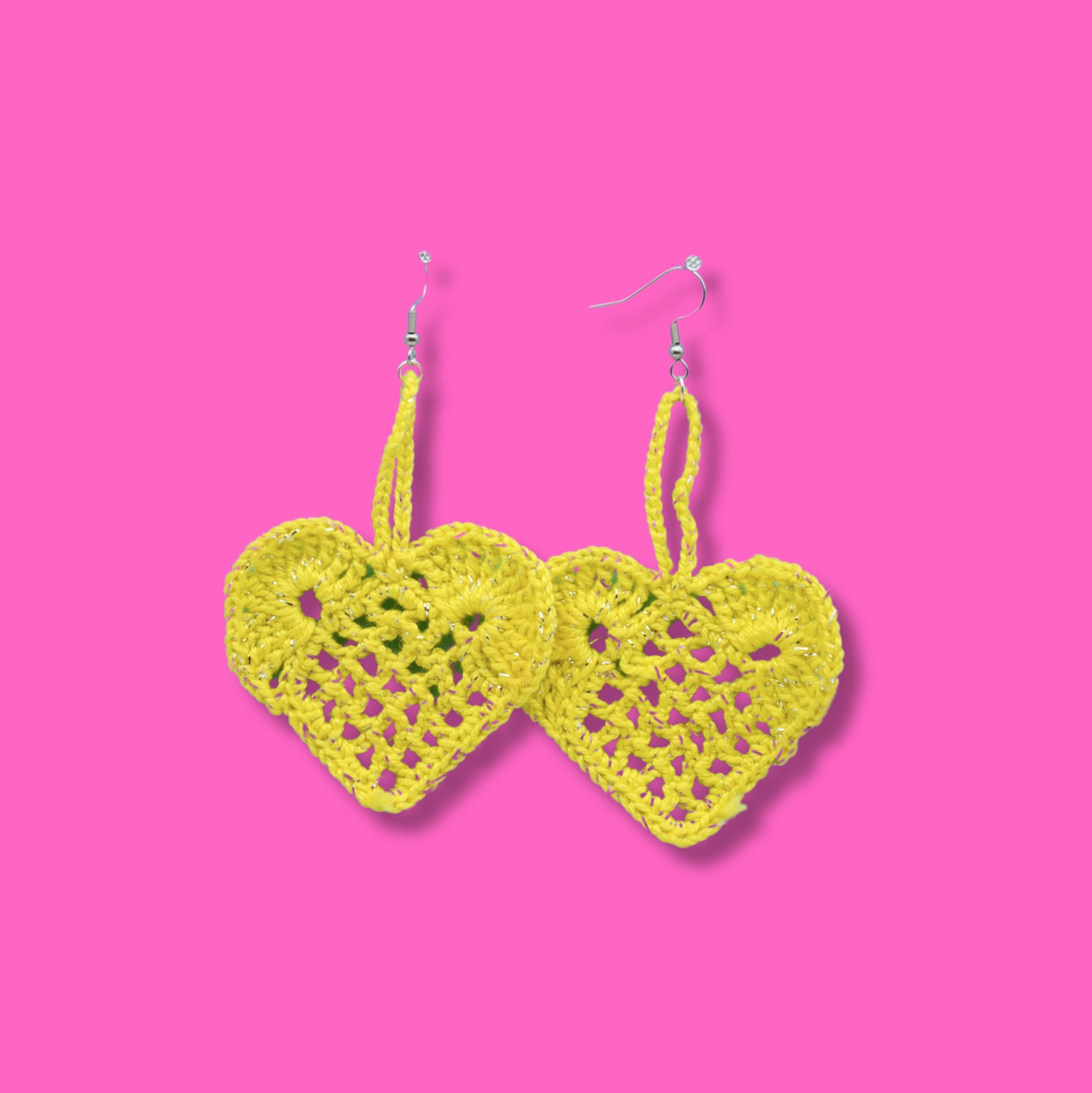 Dessa örhängen är söta virkade hjärtan, omsorgsfullt återvunna från tyg dekoration och nu ett par kreativa och roliga örhängen. Hängena är tillverkade av rostfritt stål, vilket ger en bra hållbarhet och är nickelfria.